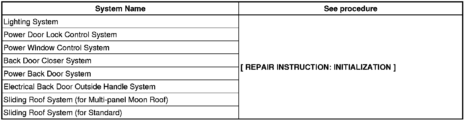 - When disconnecting the negative (-) battery terminal, initialize the following systems after the terminal is reconnected.