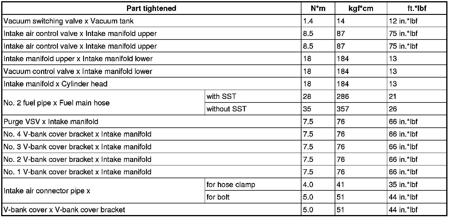 SERVICE SPECIFICATIONS: 3UZ-FE INTAKE: TORQUE SPECIFICATIONS