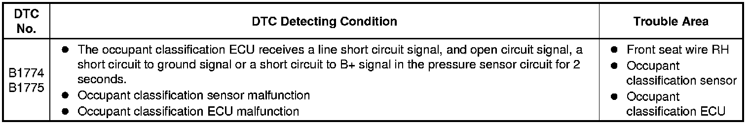 SUPPLEMENTAL RESTRAINT SYSTEM: OCCUPANT CLASSIFICATION SYSTEM: B1774,B1775: Pressure Sensor Circuit Malfunction
