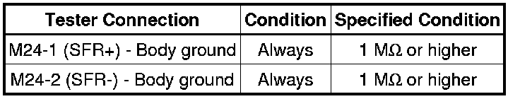 Never connect the tester to the front seat side airbag assembly RH (front side squib RH) for measurement, as this may lead to a serious injury due to airbag deployment.