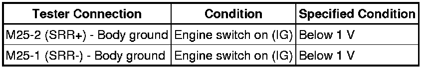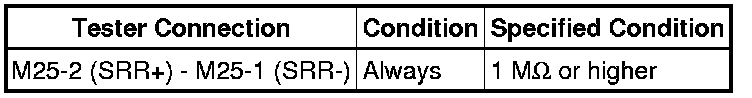 Never connect a tester to the rear seat side airbag assembly RH (rear side squib RH) for measurement, as this may lead to a serious injury due to airbag deployment.