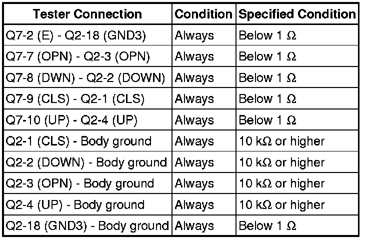 (a) Check the auto operation with the OPEN, CLOSE, UP and DOWN switches On-Vehicle Inspection.