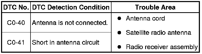 AUDIO / VISUAL: AUDIO AND VISUAL SYSTEM (w/o Navigation System): C0-40,C0-41: Antenna not Connected