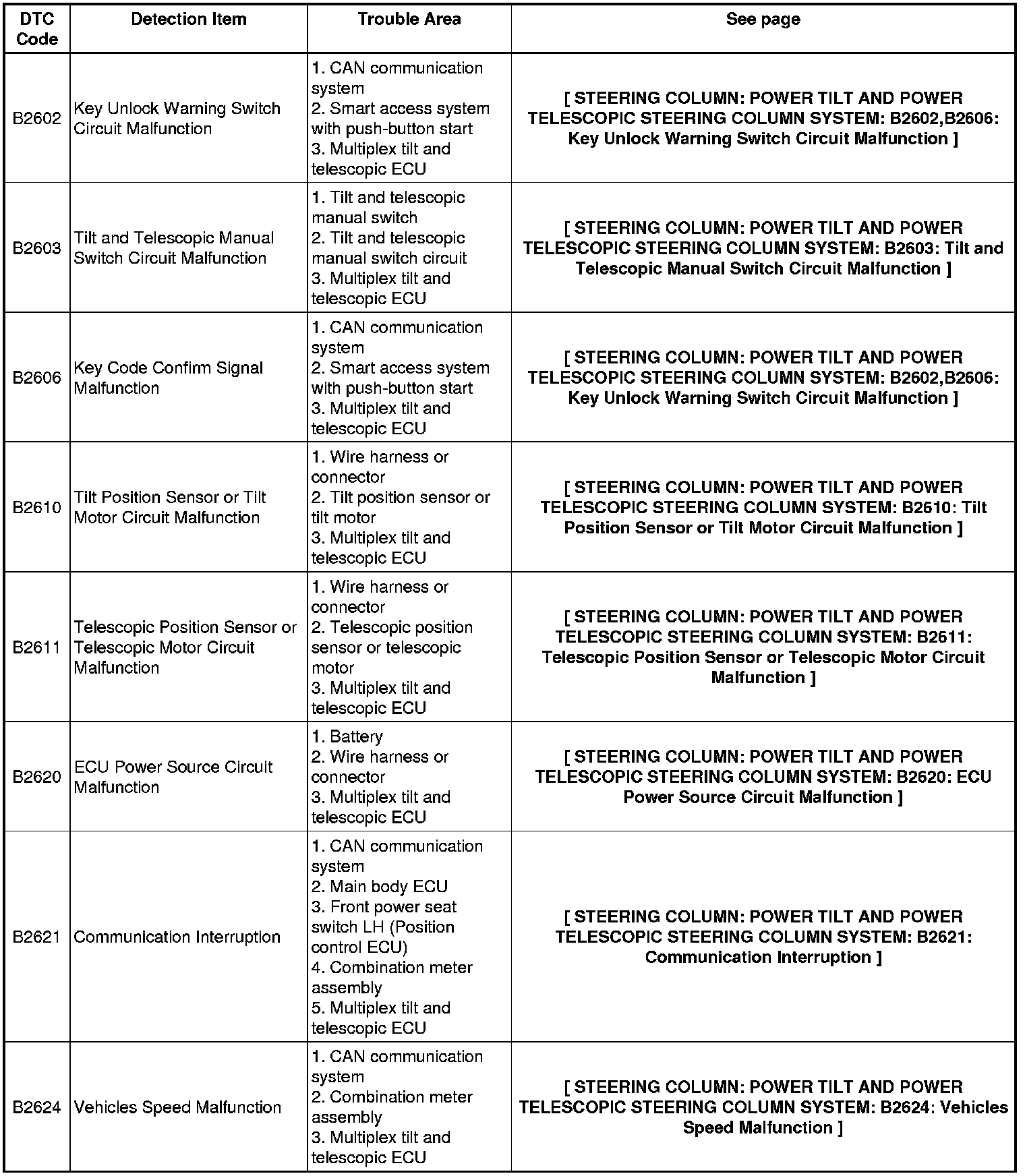 STEERING COLUMN: POWER TILT AND POWER TELESCOPIC STEERING COLUMN SYSTEM: DIAGNOSTIC TROUBLE CODE CHART