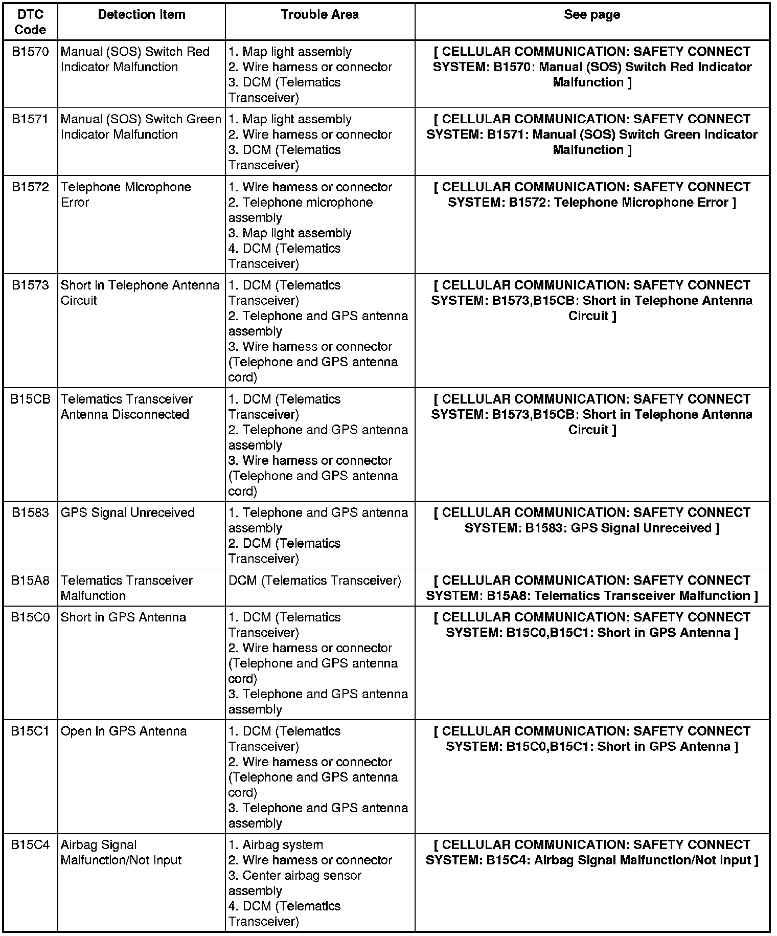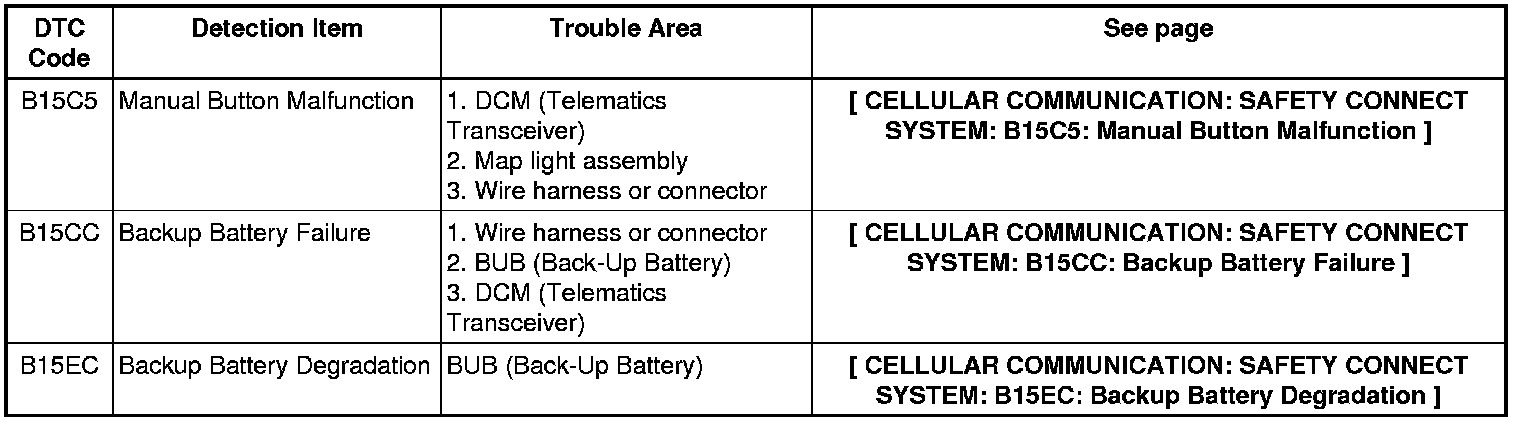 CELLULAR COMMUNICATION: SAFETY CONNECT SYSTEM: DIAGNOSTIC TROUBLE CODE CHART