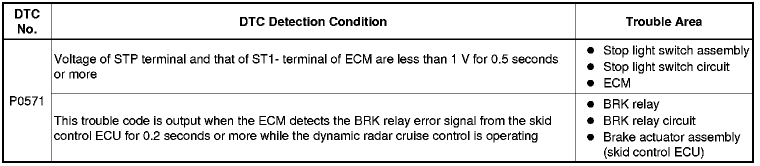 CRUISE CONTROL: DYNAMIC RADAR CRUISE CONTROL SYSTEM: P0571: Stop Light Switch Circuit Malfunction