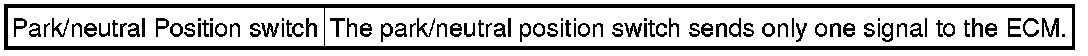 The park/neutral position switch detects the shift lever position and sends a signal to the ECM.