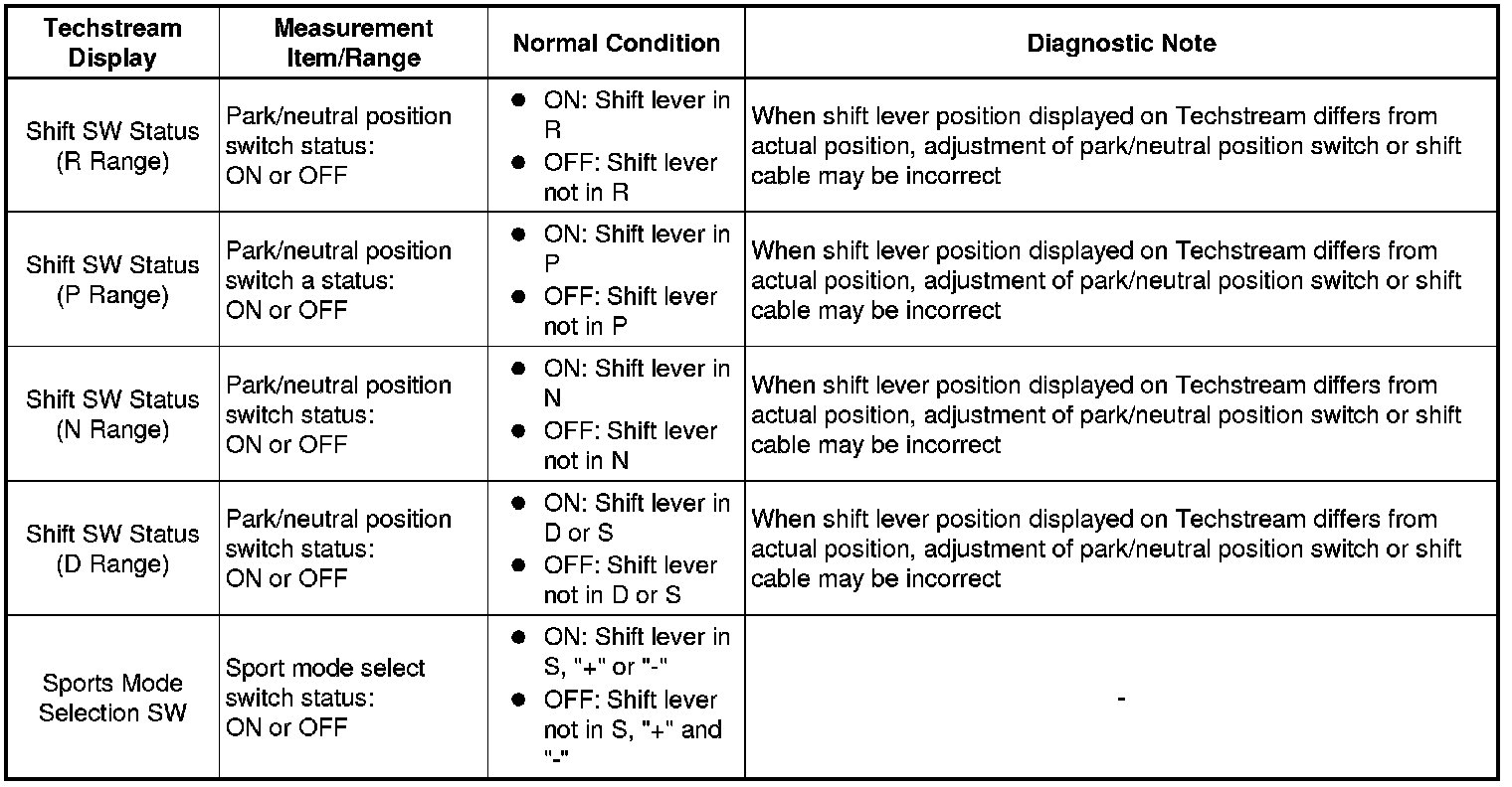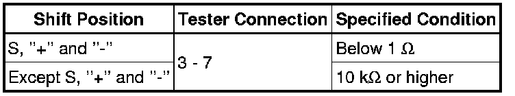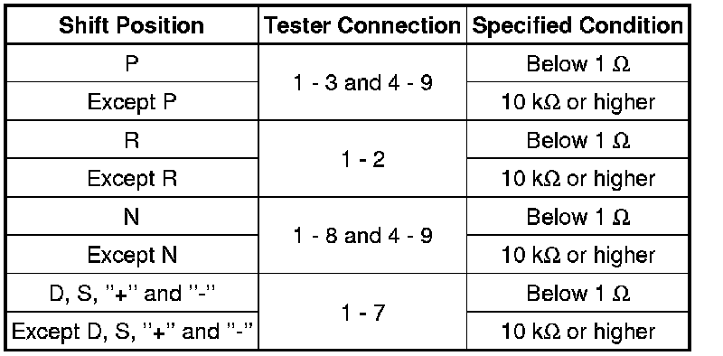 (b) Measure the resistance according to the value(s) in the table below when the shift lever is moved to each position.
