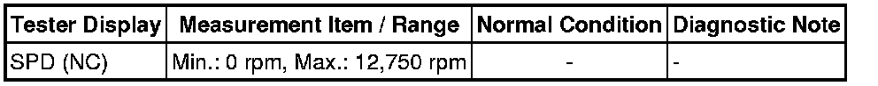 - SPD (NC) is always more than 0 and less than 300 rpm while driving the vehicle at 31 mph (50 km/h) or more: Sensor trouble, improper installation, or intermittent connection trouble of the circuit.