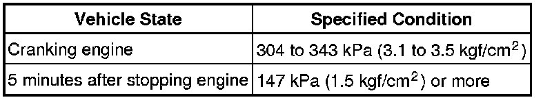 (a) Attach a fuel pressure gauge and check the fuel pressure when cranking the engine and after stopping the engine.