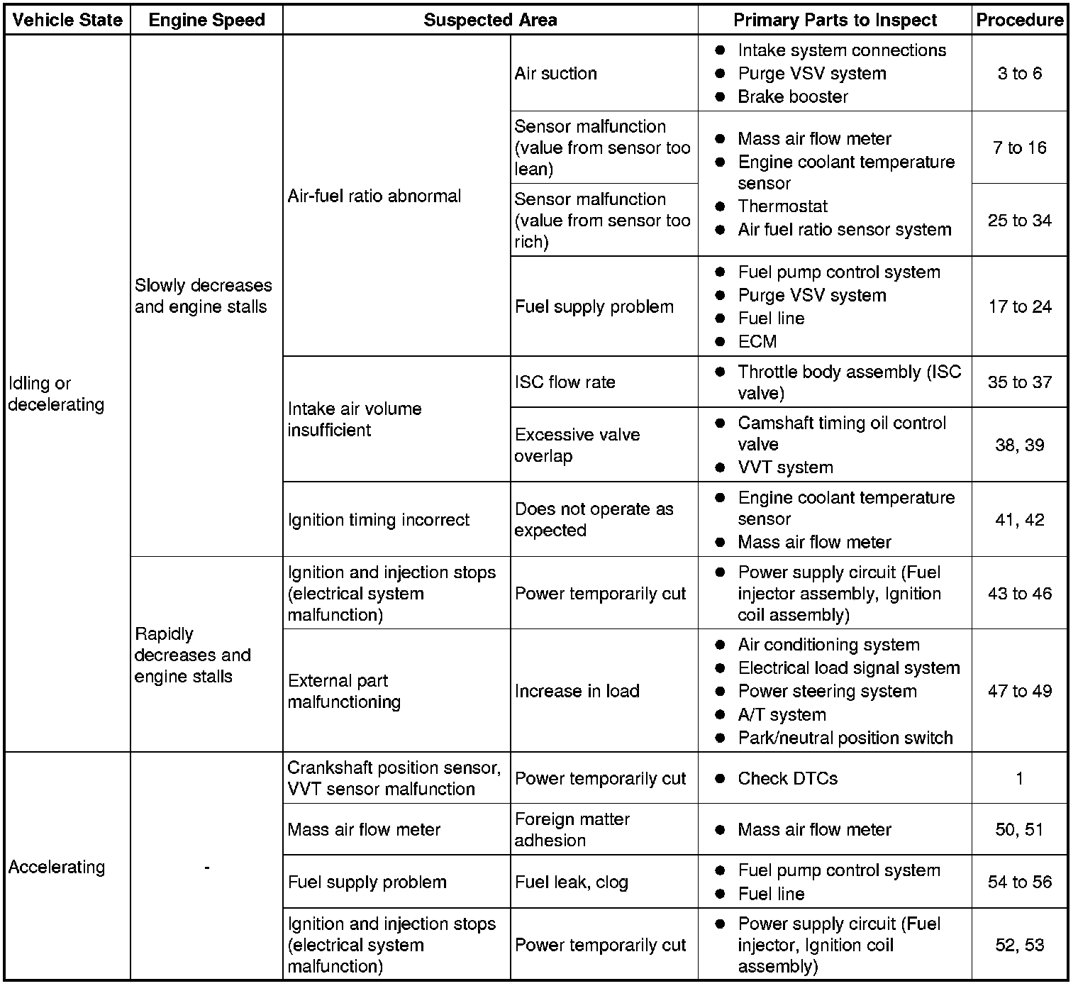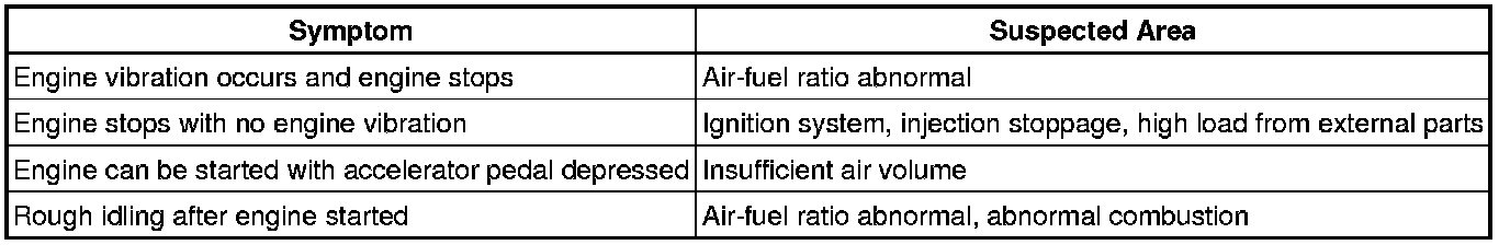 - If the engine stalled when the intake air volume was low (during idling or deceleration), there may be a decrease in torque due to an incorrect air-fuel ratio, etc.