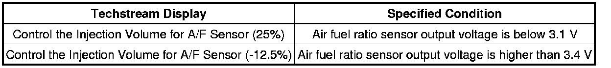 - *2: If the air fuel ratio sensor is malfunctioning and constantly outputs a value indicating the air-fuel ratio is lean, the actual air-fuel ratio will become rich and the engine may stall.