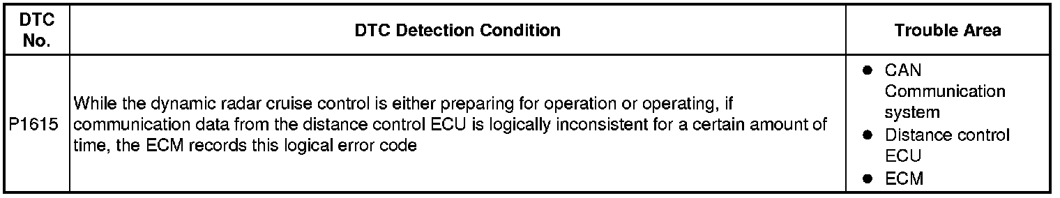 CRUISE CONTROL: DYNAMIC RADAR CRUISE CONTROL SYSTEM: P1615: Communication Error from Distance Control ECU to ECM