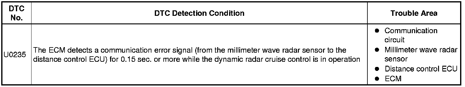 CRUISE CONTROL: DYNAMIC RADAR CRUISE CONTROL SYSTEM: U0235: Lost Communication with Cruise Control Front Distance Range Sensor