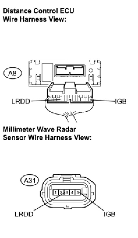 1. CHECK HARNESS AND CONNECTOR (DISTANCE CONTROL ECU - MILLIMETER WAVE RADAR SENSOR)