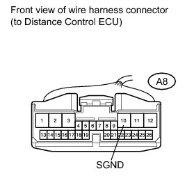 NG -- REPAIR OR REPLACE HARNESS OR CONNECTOR (DISTANCE CONTROL ECU - BODY GROUND)