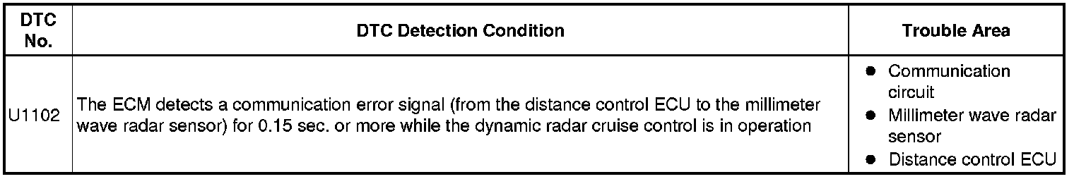 CRUISE CONTROL: DYNAMIC RADAR CRUISE CONTROL SYSTEM: U1102: Lost Communication with Radar Sensor