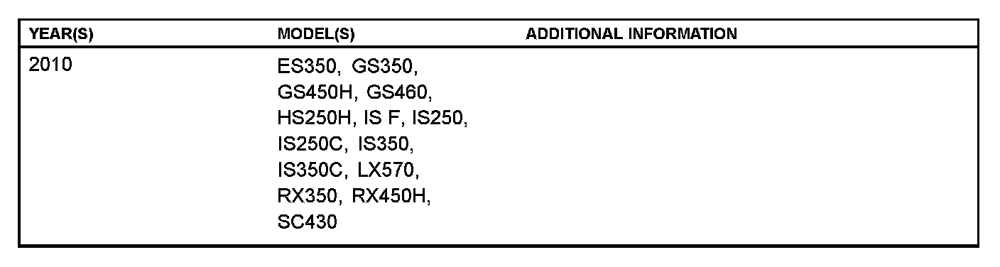 This TSIB applies to all 2010 GS 460 vehicles with navigation systems and to vehicles produced BEFORE the Production Change Effective VINs shown.