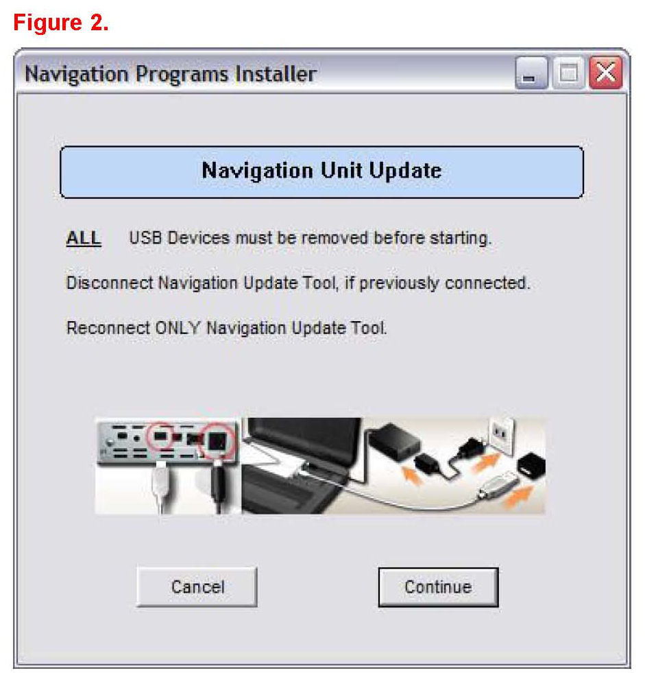1. Connect the Navigation Update Tool to the vehicle (Tool MUST be disconnected from the PC)