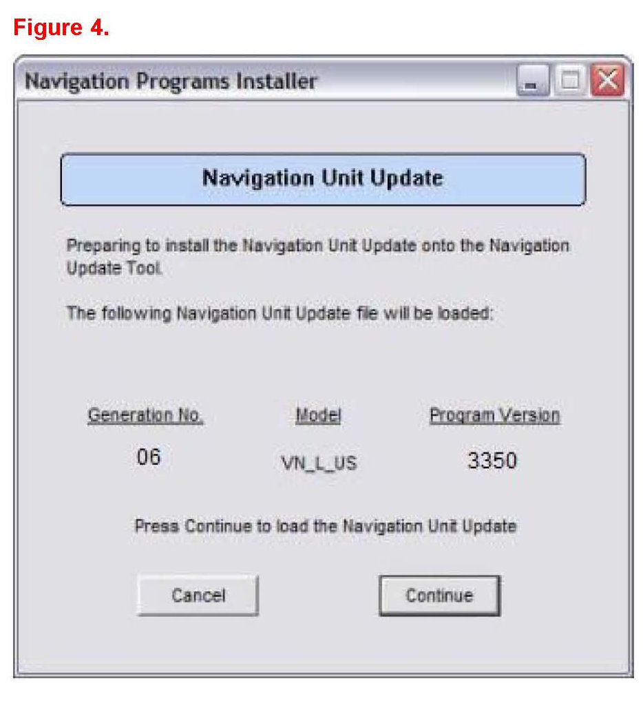 8. Navigation Firmware is ready to be loaded onto the Navigation Update Tool click Continue.