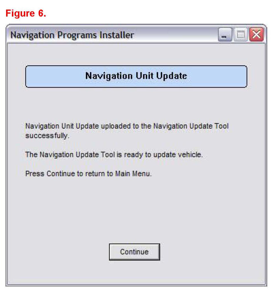 10. Once the Navigation Firmware is successfully loaded onto the Navigation Update Tool click Continue to finish the installer.