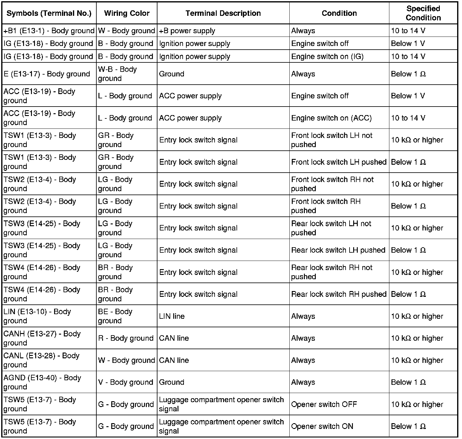 DOOR LOCK: SMART ACCESS SYSTEM WITH PUSH-BUTTON START: TERMINALS OF ECU