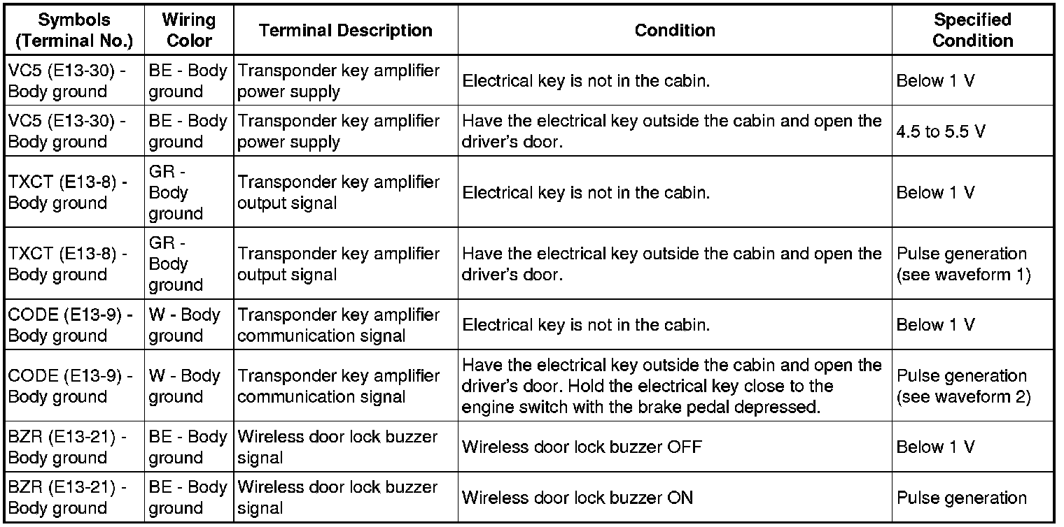 (c) If the result is not as specified, the wire harness side may have a malfunction.