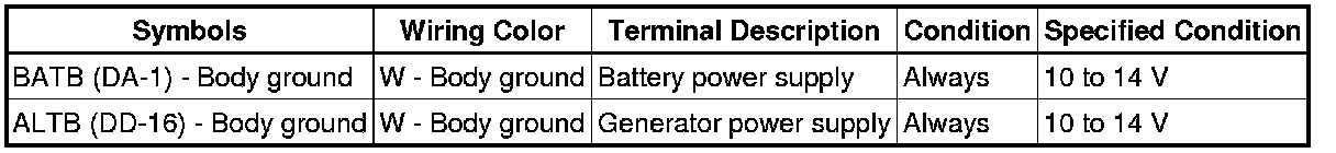 (b) Measure the voltage and resistance between the specified terminals of the wire harness side connectors and body ground.