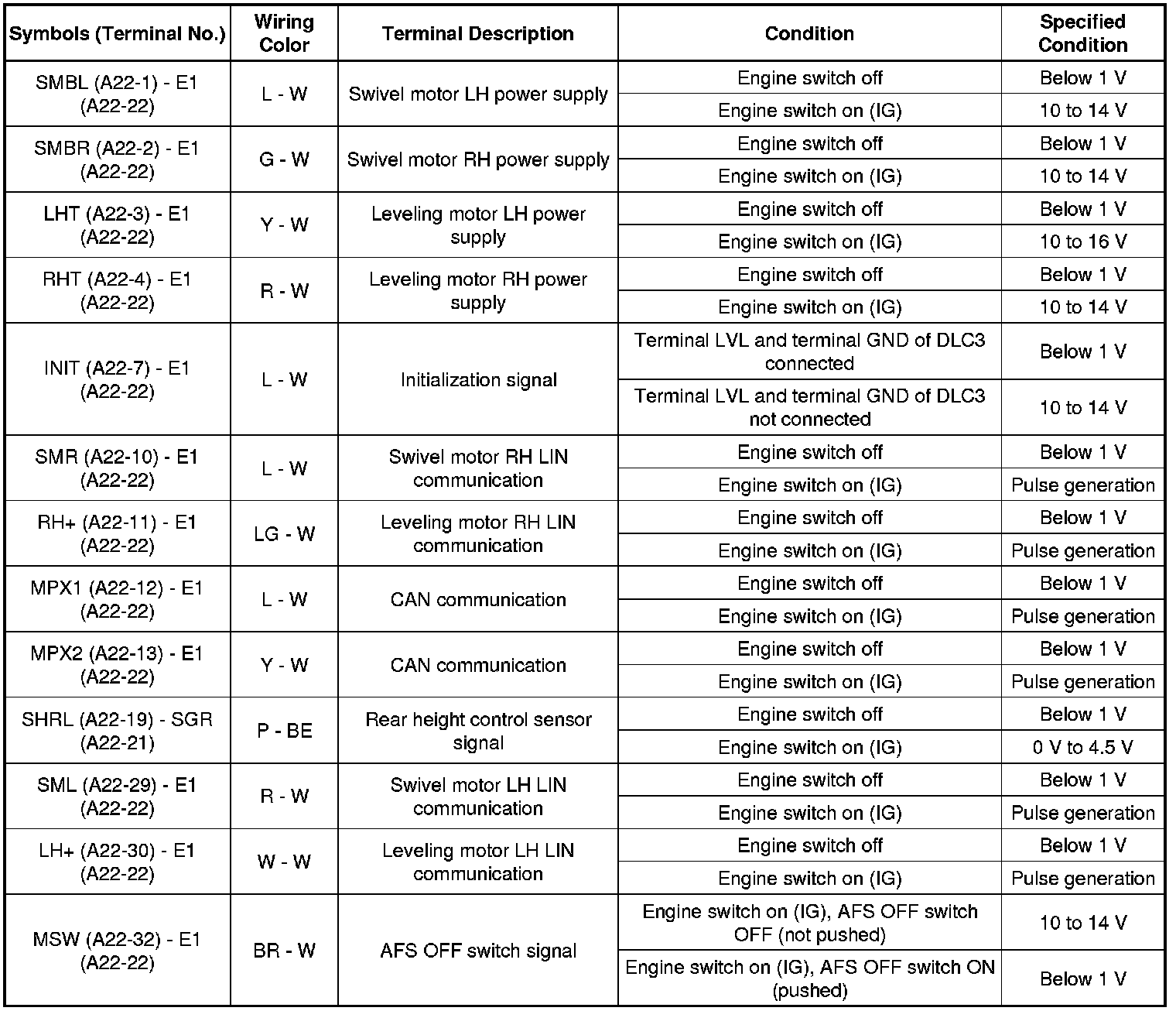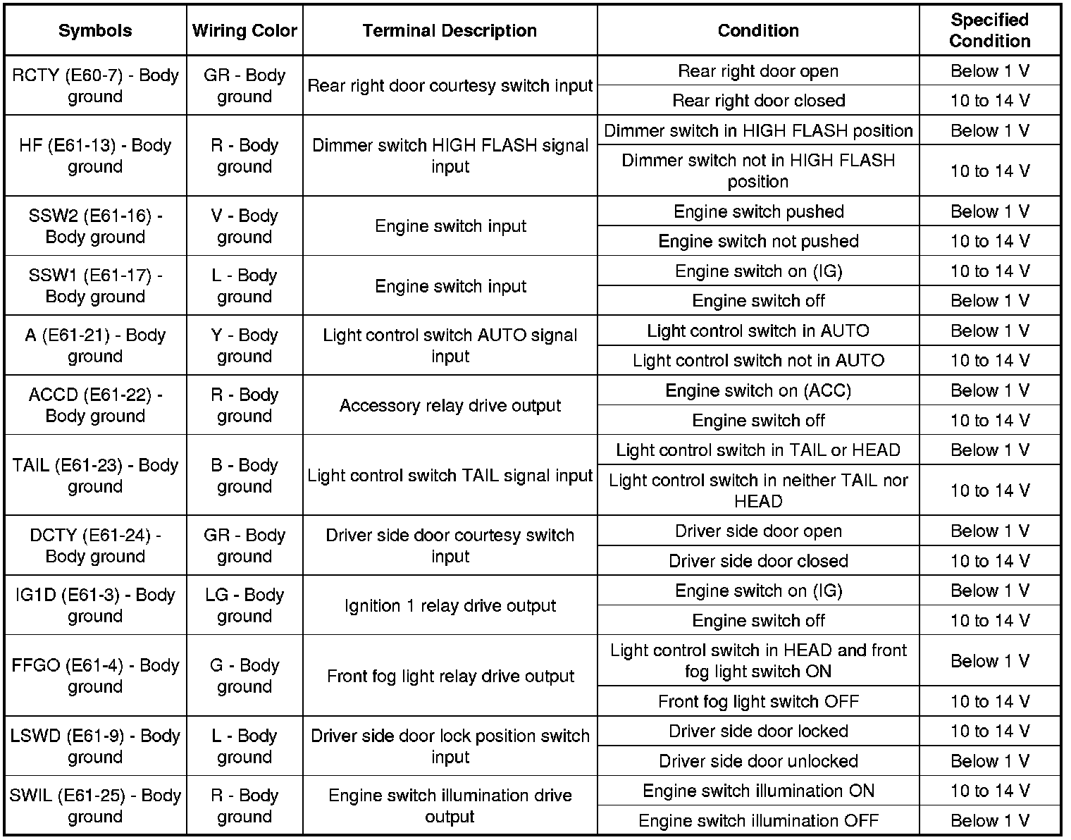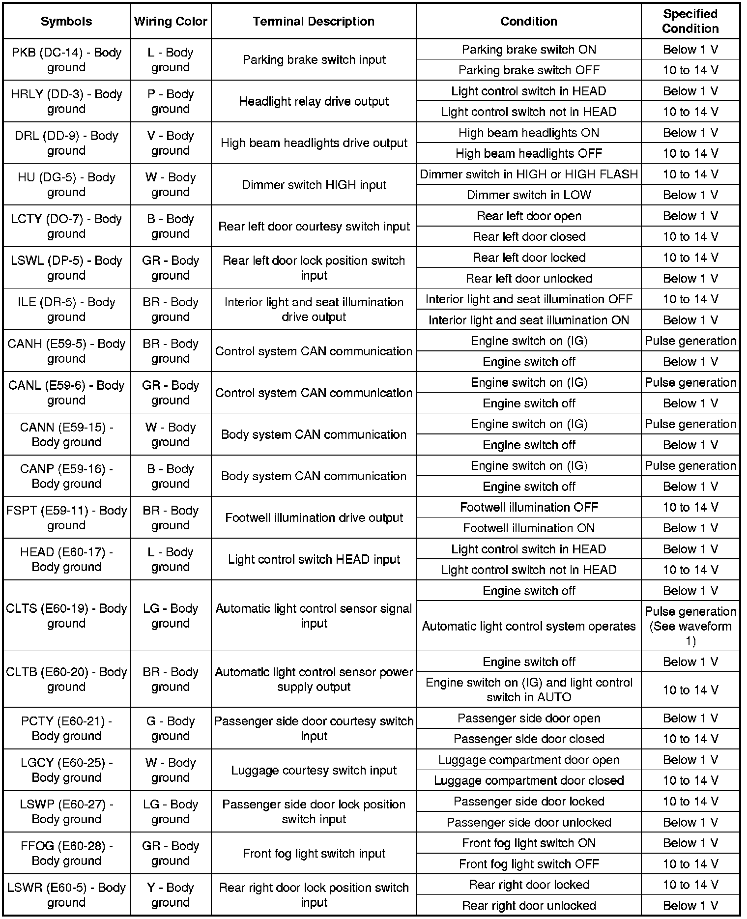 LIGHTING: LIGHTING SYSTEM: TERMINALS OF ECU