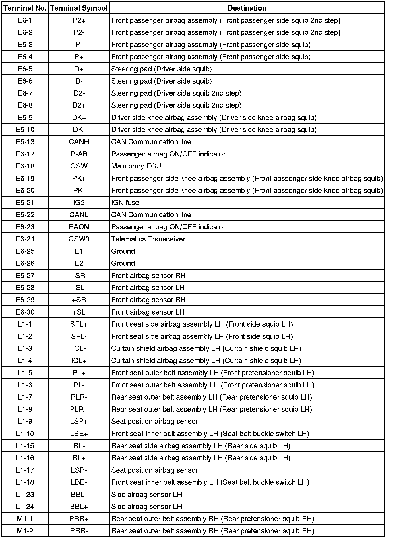 SUPPLEMENTAL RESTRAINT SYSTEM: AIRBAG SYSTEM: TERMINALS OF ECU