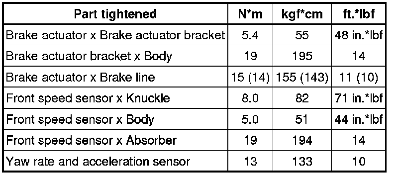 SERVICE SPECIFICATIONS: BRAKE CONTROL: TORQUE SPECIFICATIONS