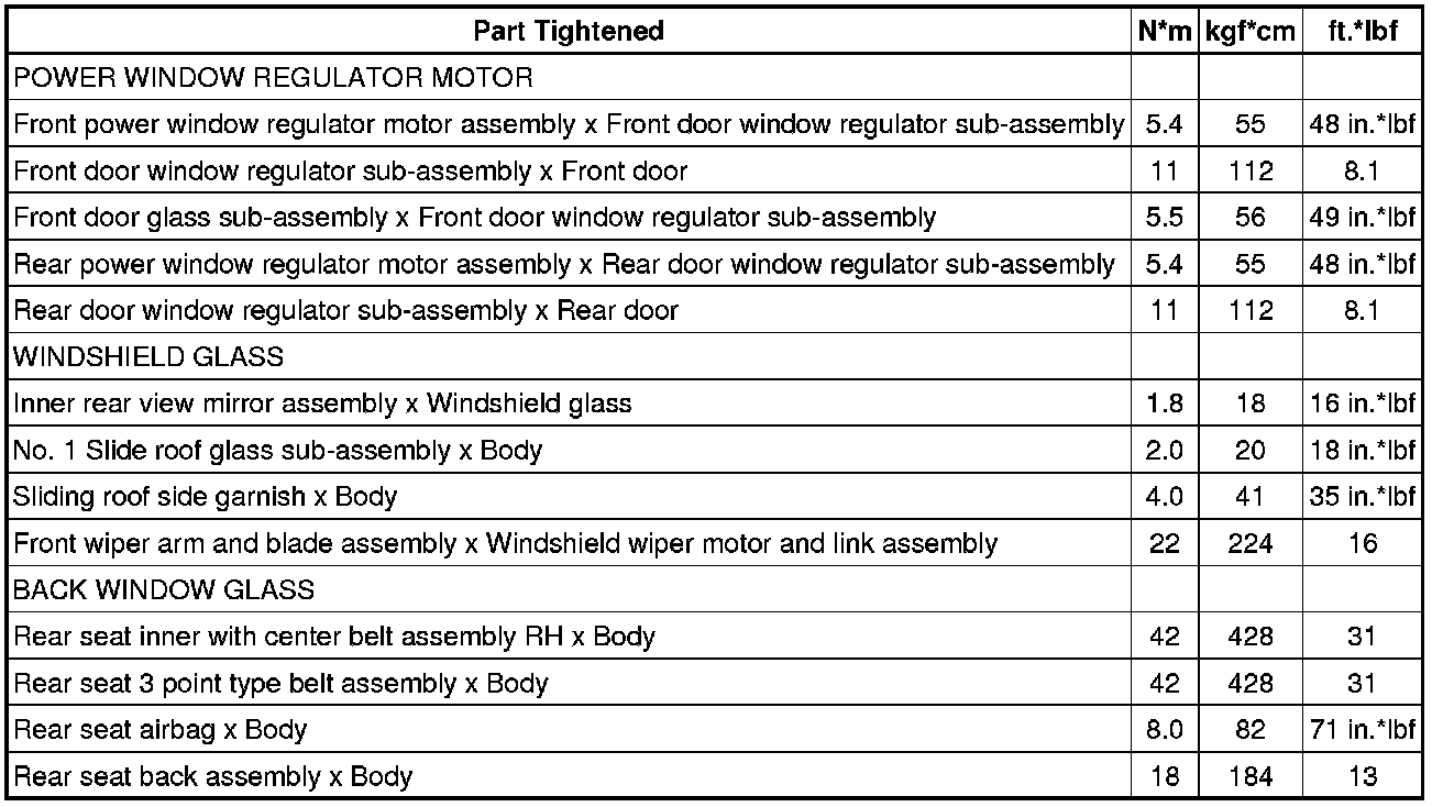/ WINDOWGLASS: TORQUE SPECIFICATIONS