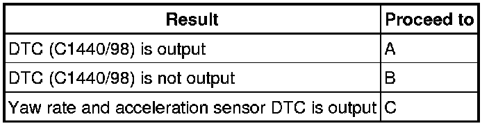 When yaw rate and acceleration sensor DTC is output together with C1440/98, inspect and repair the trouble areas indicated by yaw rate and acceleration sensor DTC first Vehicle Stability Control System.