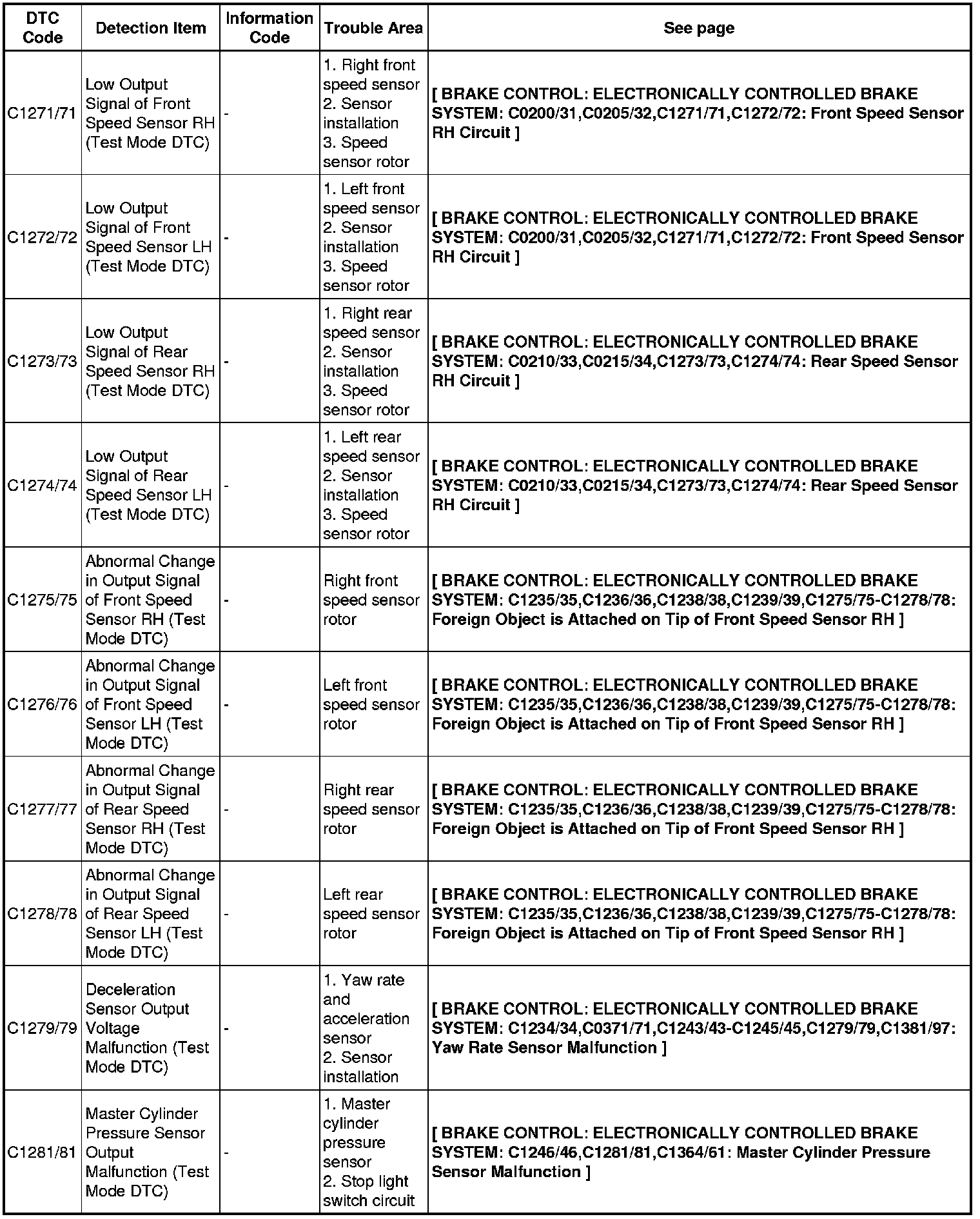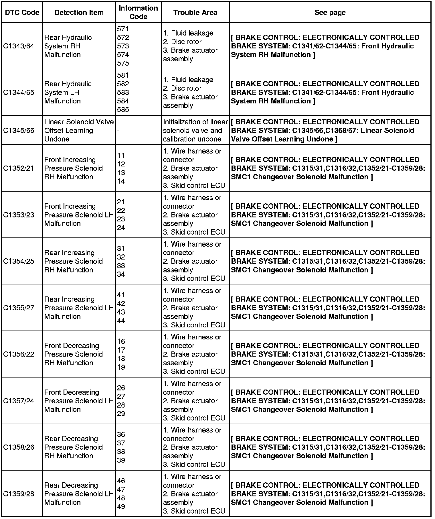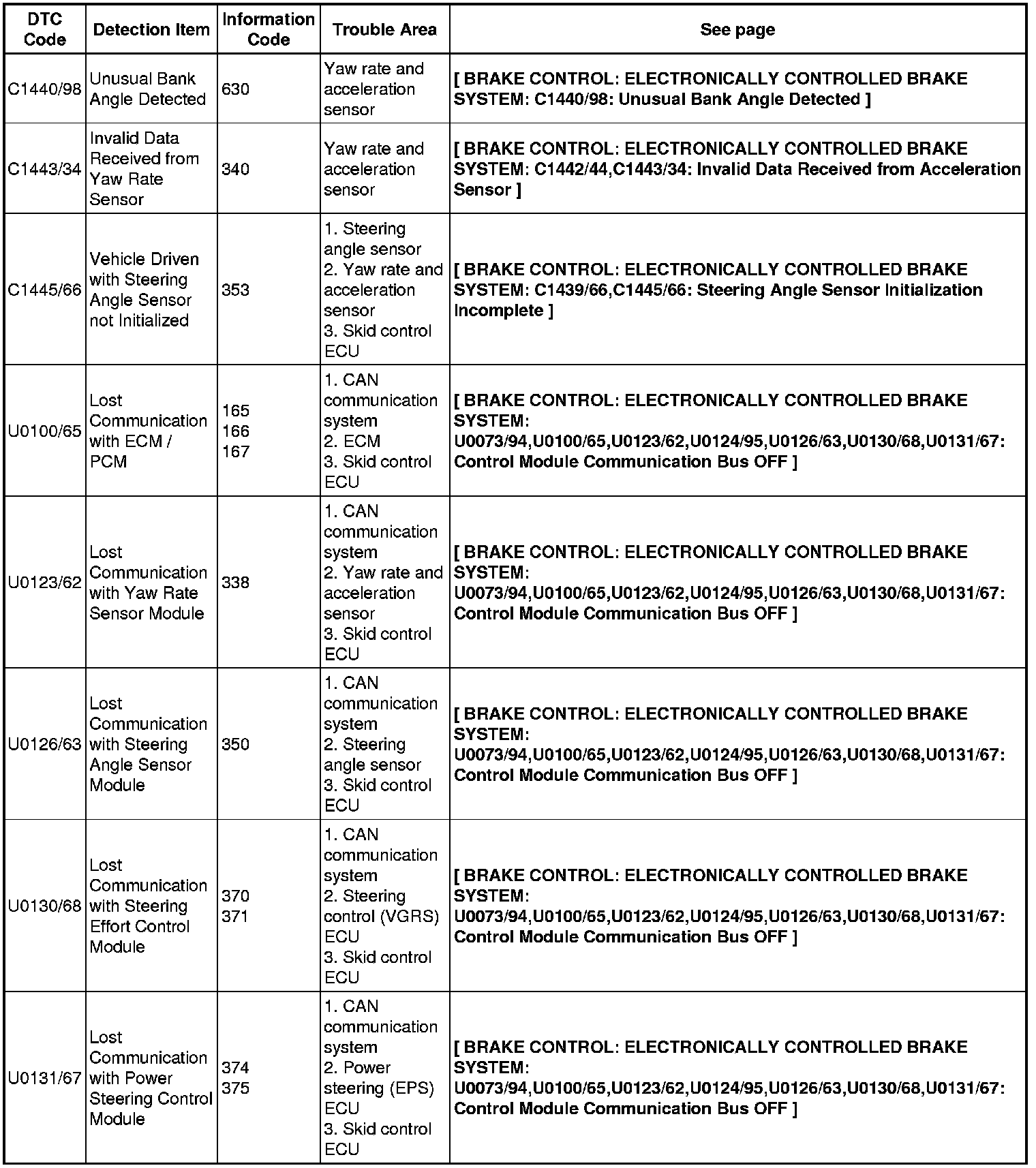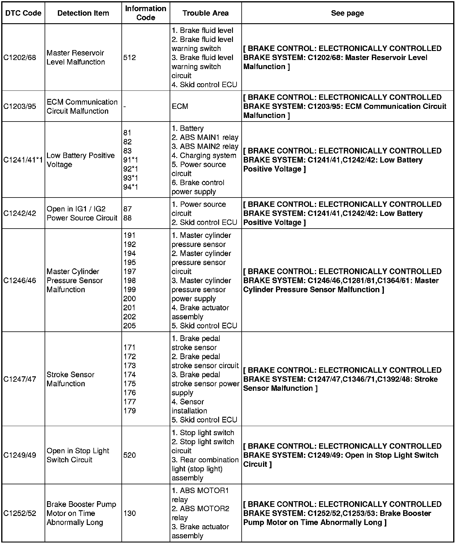 BRAKE CONTROL: ELECTRONICALLY CONTROLLED BRAKE SYSTEM: DIAGNOSTIC TROUBLE CODE CHART
