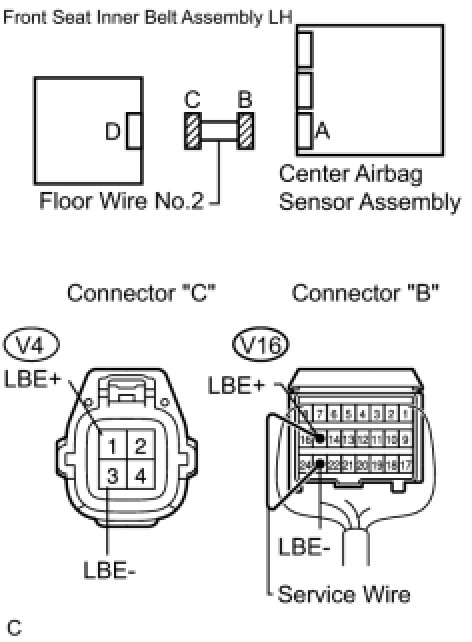 (b) Using a service wire, connect V16-15 (LBE+) and V16-23 (LBE-) of connector "B".