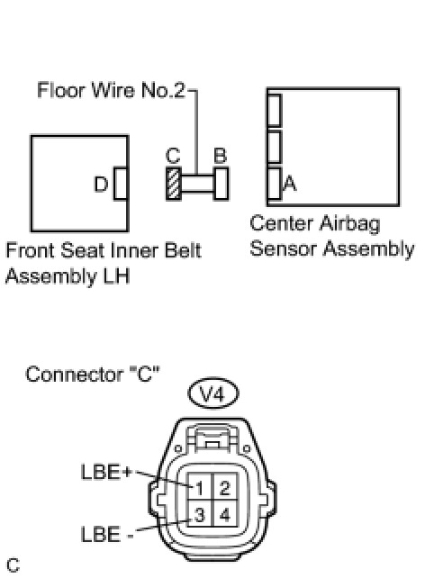 (c) Check that the connectors are properly connected to the center airbag sensor assembly and the front seat inner belt assembly LH.