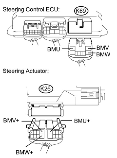 (b) Disconnect the connectors from the steering control ECU and the steering actuator.