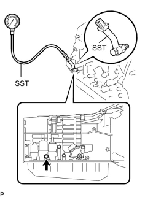 - *: Activate the Solenoid (SLT) in the Active Test is performed to check the line pressure change by connecting SST to the automatic transmission, which is used in the HYDRAULIC TEST Hydraulic Test.