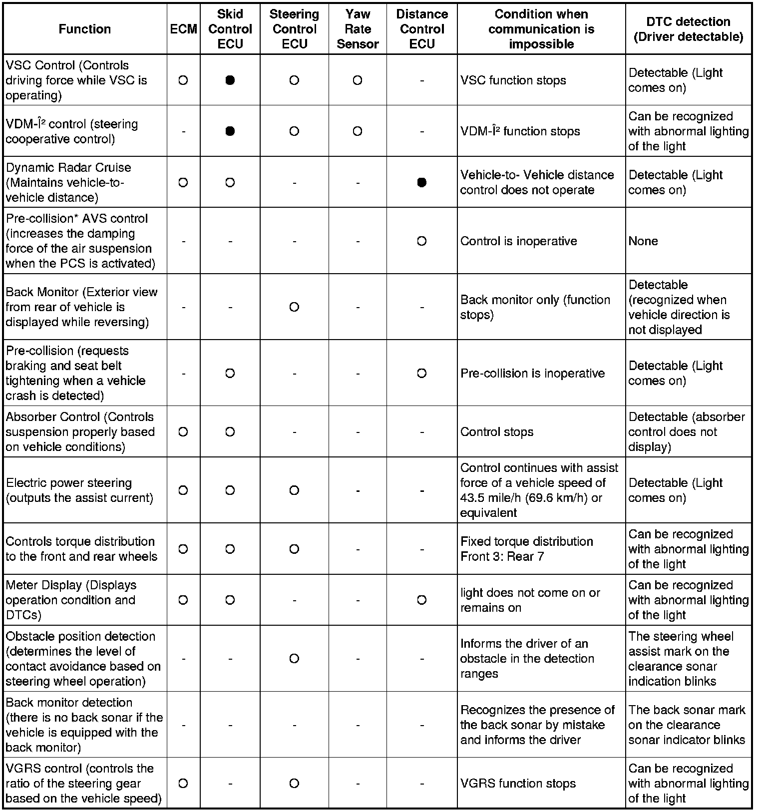 (b) Effects on each system when communication is impossible. (For further details, see the pages for each system.)
