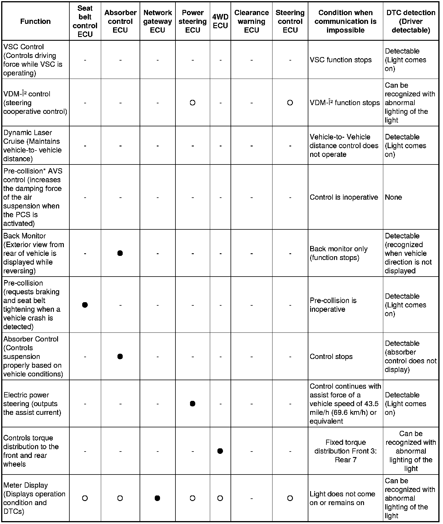 (a) When communication fails in any of the CAN bus lines (communication line) due to a short circuit or other causes, the fail-safe function, which is specified for each system, operates to prevent the system from malfunctioning.