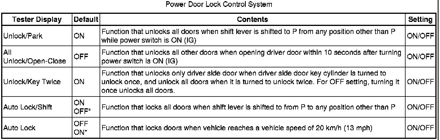 DOOR LOCK: POWER DOOR LOCK CONTROL SYSTEM: CUSTOMIZE PARAMETERS