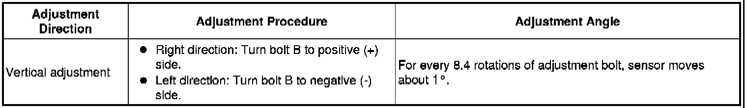 (1) If the axis is not as specified, use a screwdriver to adjust bolt B until the divergence of the radar beam axis is 0°.