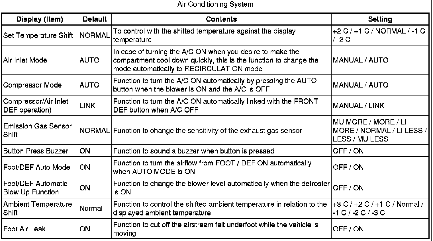 AIR CONDITIONING: AIR CONDITIONING SYSTEM: CUSTOMIZE PARAMETERS