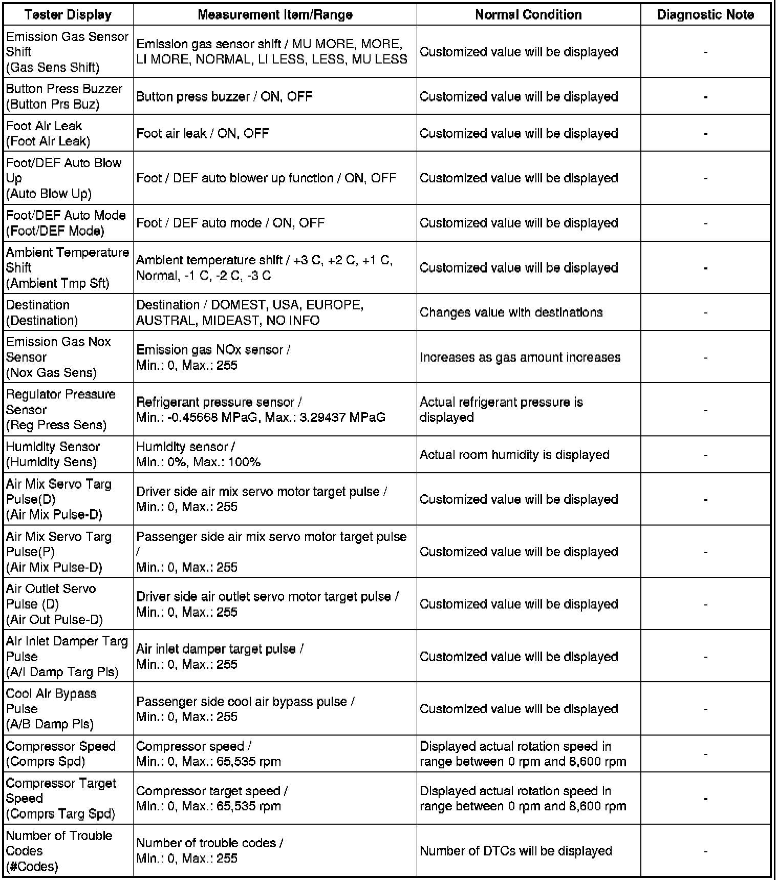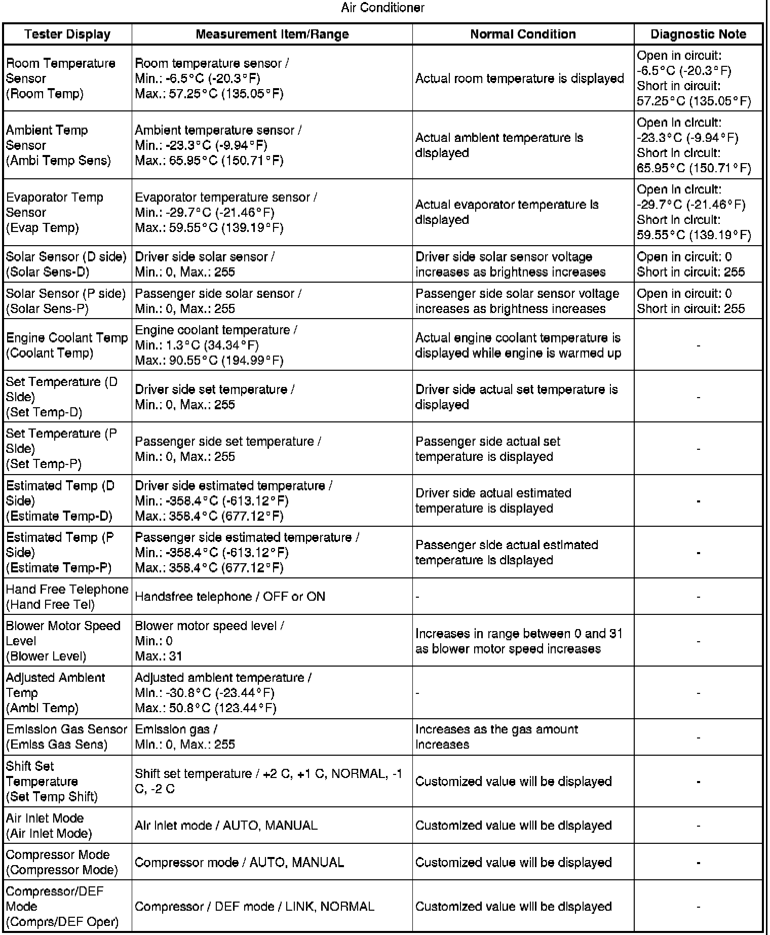 (1) for Air Conditioner: Body Electrical / Air Conditioner / Data List.