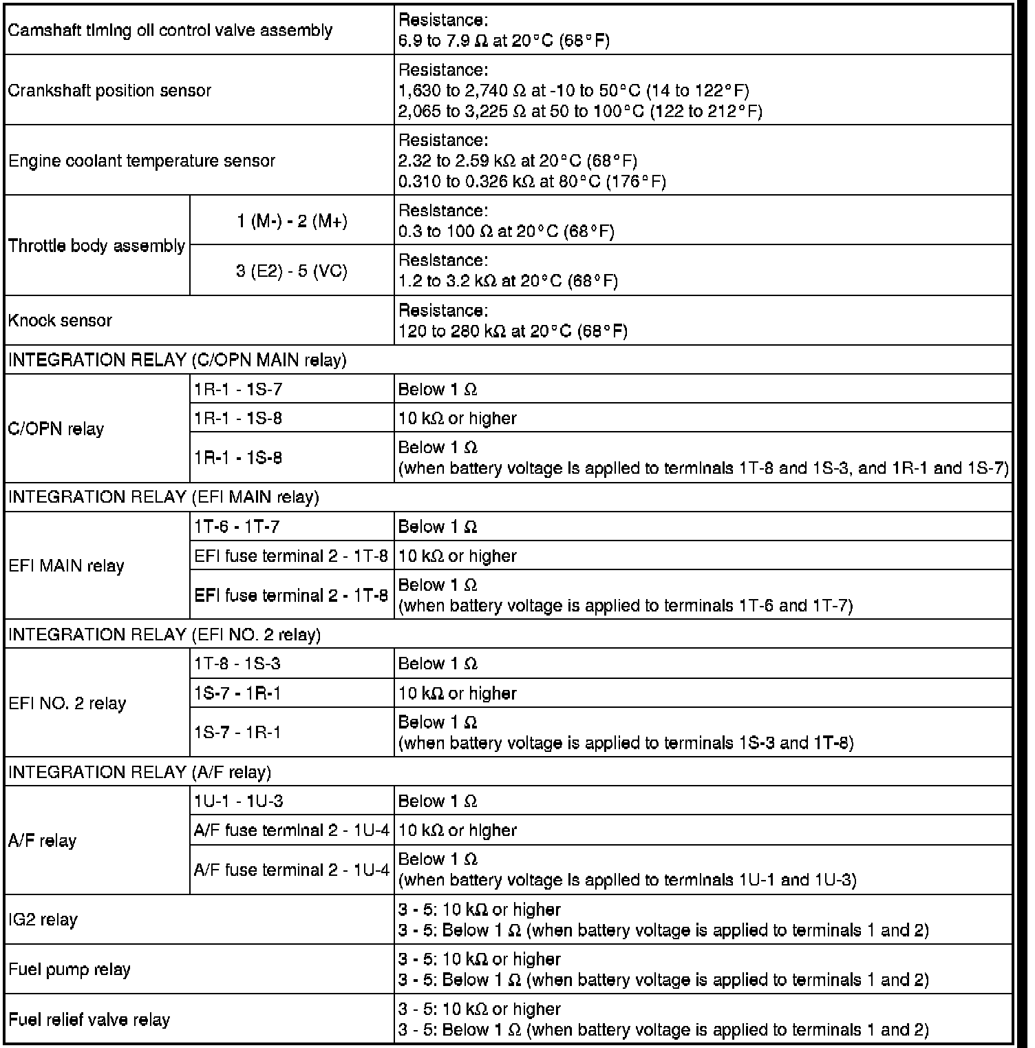 SERVICE SPECIFICATIONS: 2GR-FSE ENGINE CONTROL SYSTEM: SERVICE DATA