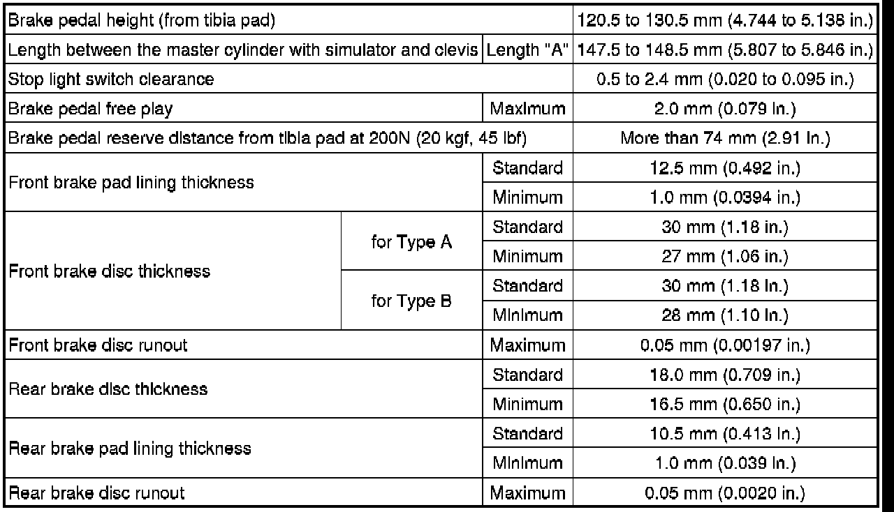 SERVICE SPECIFICATIONS: BRAKE: SERVICE DATA