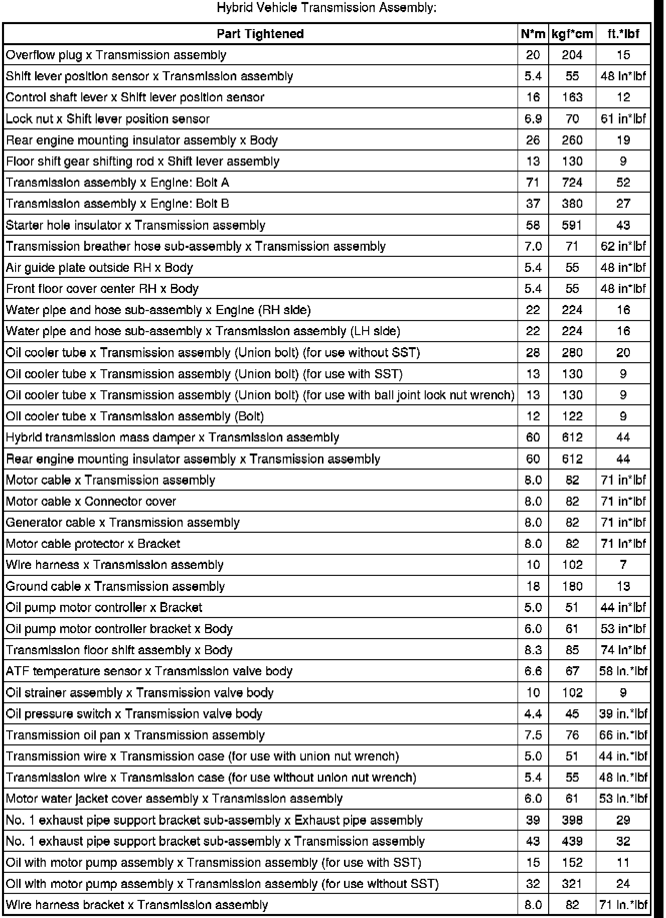 SERVICE SPECIFICATIONS: L110 HYBRID TRANSMISSION / TRANSAXLE: TORQUE SPECIFICATIONS