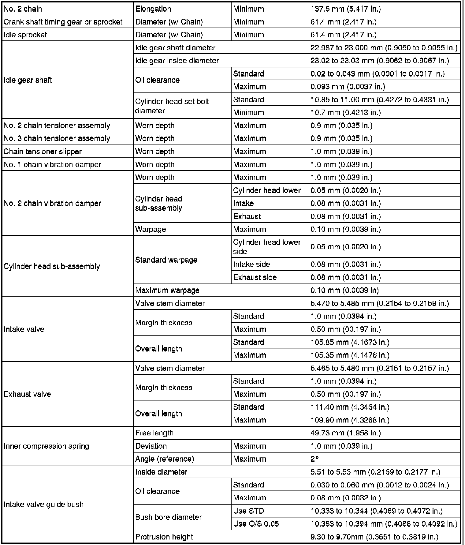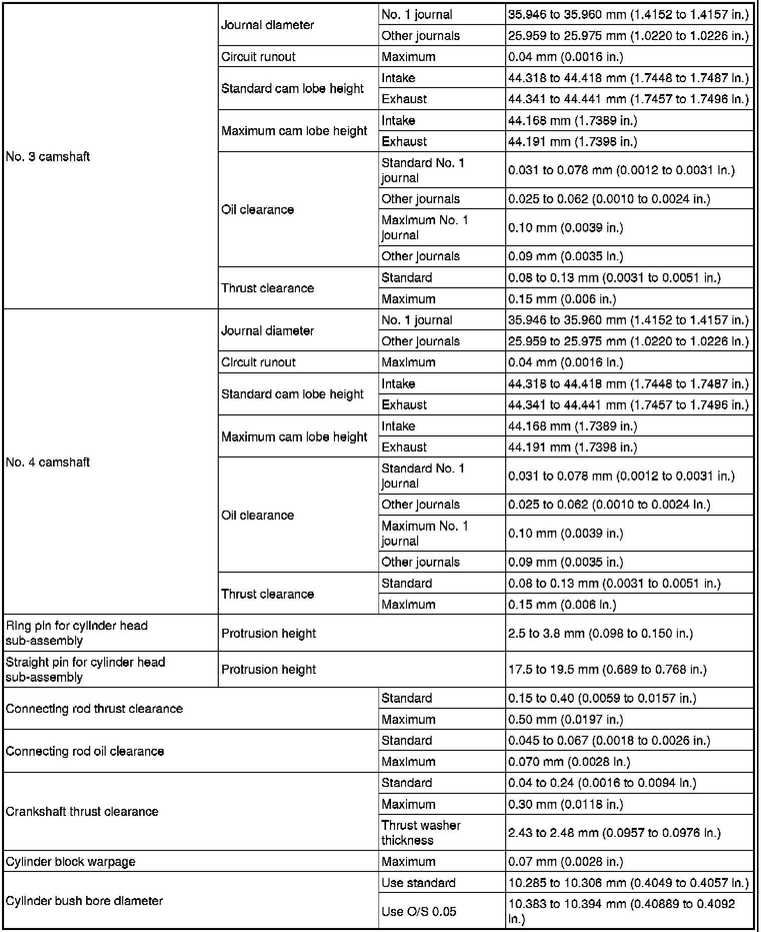 SERVICE SPECIFICATIONS: 2GR-FSE ENGINE MECHANICAL: SERVICE DATA