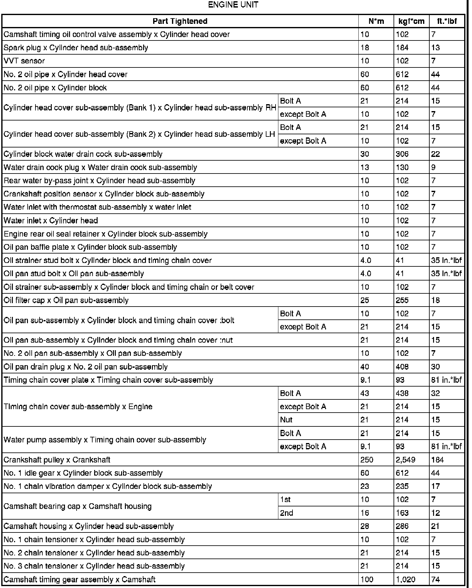 SERVICE SPECIFICATIONS: 2GR-FSE ENGINE MECHANICAL: TORQUE SPECIFICATIONS
