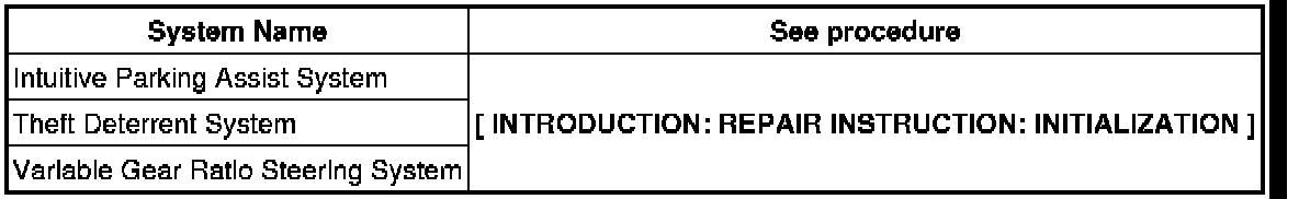 When disconnecting the cable from the negative (-) battery terminal, initialize the following systems after the cable is reconnected.